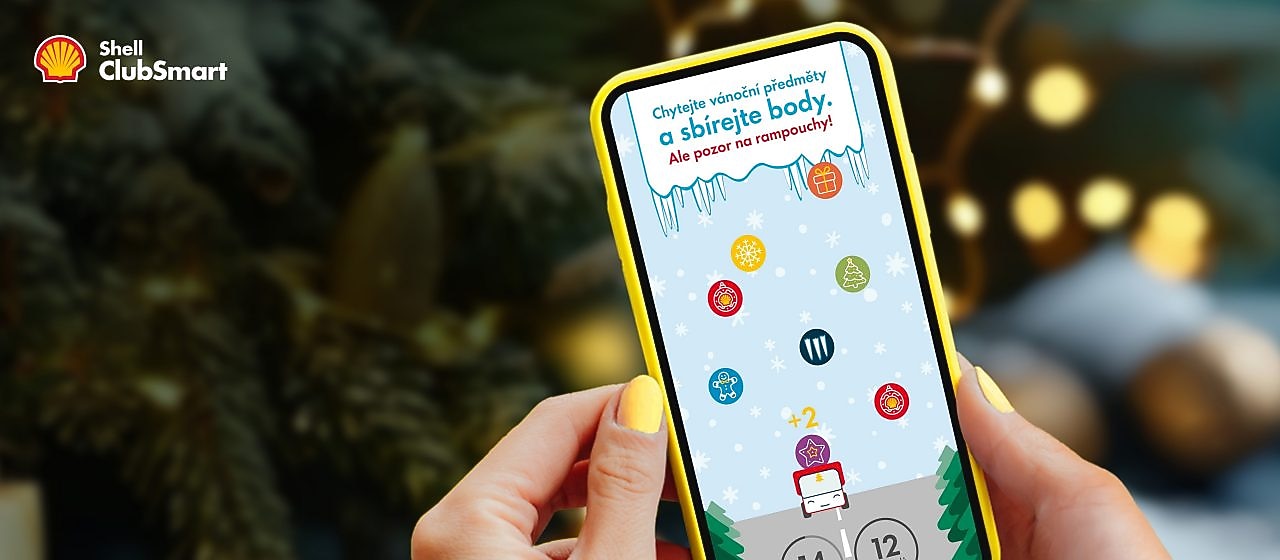 *Vánoční hru si můžete zahrát od 4. 11. 2025 do 31. 12. 2025 v aplikaci Shell po splnění podmínky nákupu v prodejně Shell v České republice alespoň za 125 Kč. Do hodnoty nákupu za alespoň 125 Kč se nezapočítávají: Pohonné hmoty, tabákové výrobky, kuřácké pomůcky, bylinné výrobky určené ke kouření, elektronické cigarety a jejich náplně, nikotinové sáčky bez tabáku, poplatky (např. mýtné), ceniny (např. poštovní známky), zboží ze samoobslužných mincovních automatů (např. nápoje), losy, služby sázkového terminálu (např. Sportka), předplacené platební služby, kupony pro mobilní telefony, telefonní karty, vratné obaly. další položky, za jejichž nákup se nepřipisují věrnostní body Shell ClubSmart. Nezapomeňte vždy naskenovat svou kartu Shell ClubSmart.